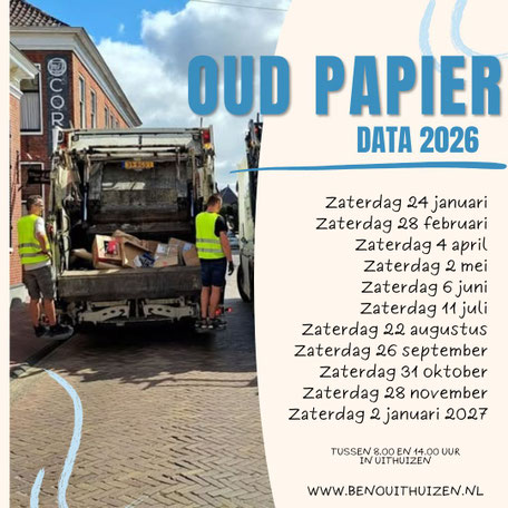 Iedere maand halen de leden en vrijwilligers tussen 08.00 en 14.00 uur het oud papier op in Uithuizen.